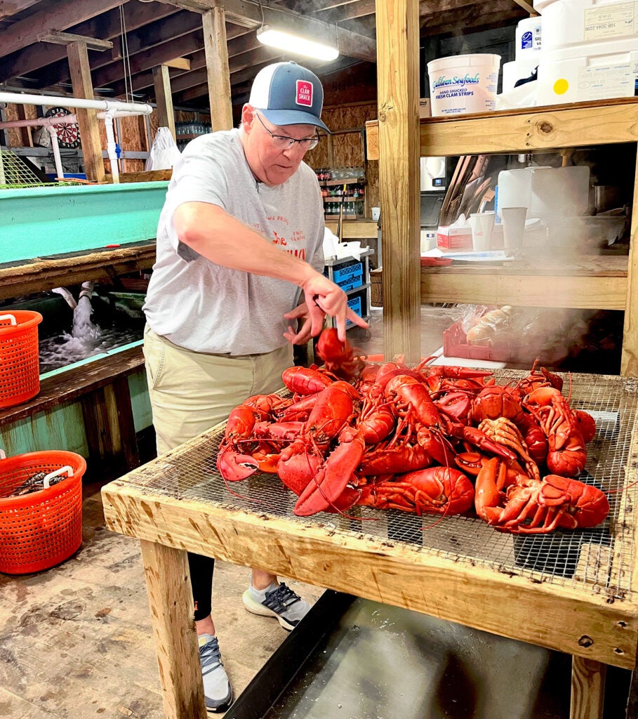 Owner Steve Kingston admires perfectly cooked lobsters fresh out of the saltwater kettle at The Clam Shack.