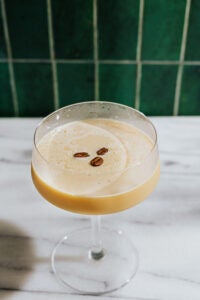 With an infused Licor 43 and a dose of herbal Chartreuse, you arrive at a carajillo that is complex, low-proof, and delightfully …
