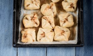 This recipe for Hungarian yeast pastry envelopes filled with sweet cheese was sourced from a late mother’s visit in a dream.