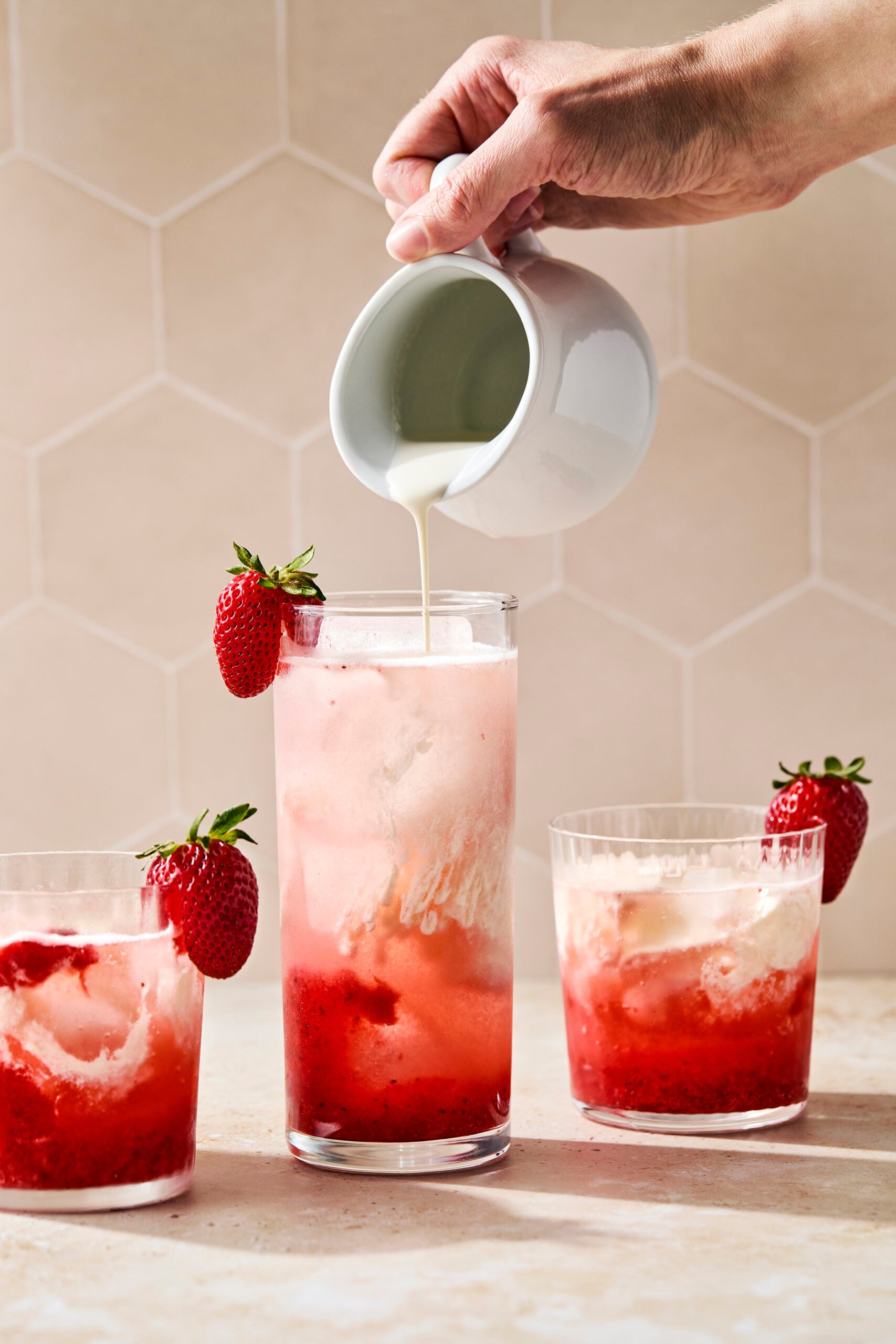 Recently I’ve rekindled my love of Italian sodas—not San Pellegrino but the kind made by flavoring seltzer water with a few pumps of Torani syrup (and, if you’re feeling wild, a splash of heavy cream). A strawberry Italian soda was my go-to coffee shop order as a child, but I still consider the creamy, sparkling drink to be a special treat, especially on a hot summer’s day. Making one at home is surprisingly easy. I use a syrup made from fresh strawberries, which is ten times better than anything sold in a bottle, plus it can be used to make milkshakes, cocktails, and even strawberry matcha in addition to this refreshing pink soda.