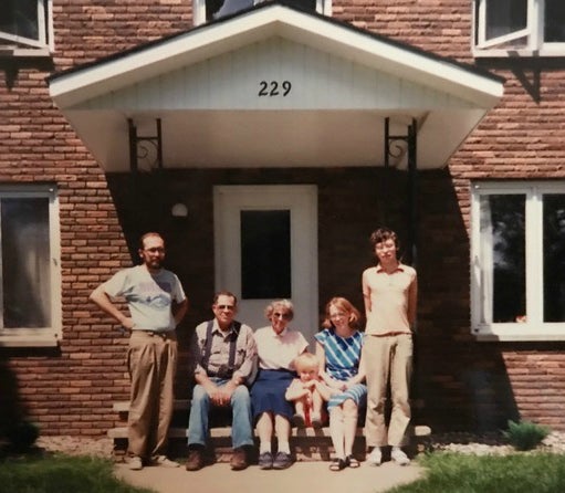 Boris Wolfson (far right) with his parents and American hosts in front of the family’s first apartment in Wisconsin.