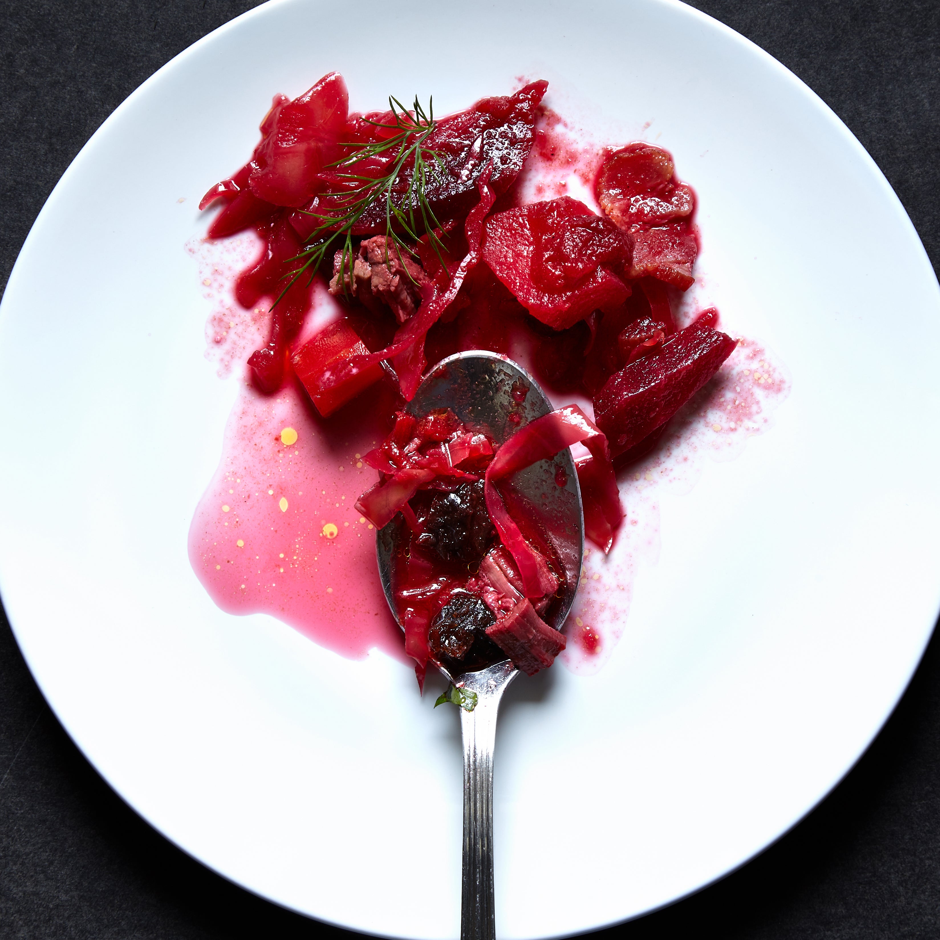 “There are big debates about the cabbage,” says Boris. His own tweaks on the recipe include roasting the marrow bones and adding the cabbage to the soup at an earlier stage instead of right at the end, so that it is softer rather than crunchy. The beets were more of an accent than a main feature, but still a defining one. “Ukrainian farmers are very proud of their beets,” says Boris. “The soil is better in the South.”