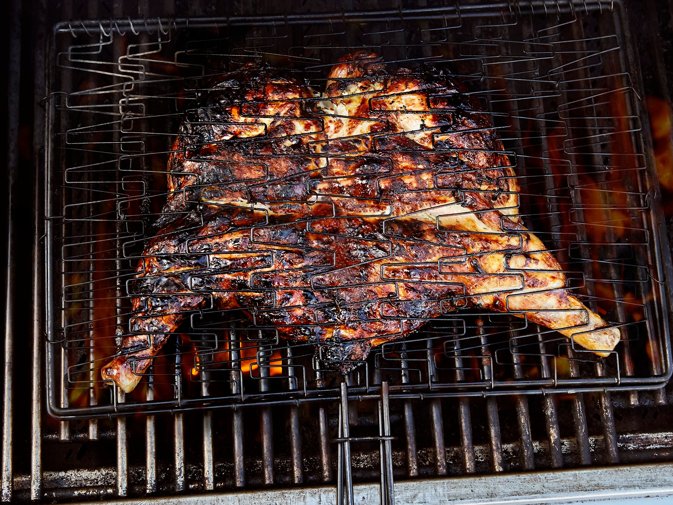 Second, Helou warns against caking the yogurt onto the meat—you want an even yogurt layer, but if there’s too much, it will stick to the grill or skillet, causing burning.