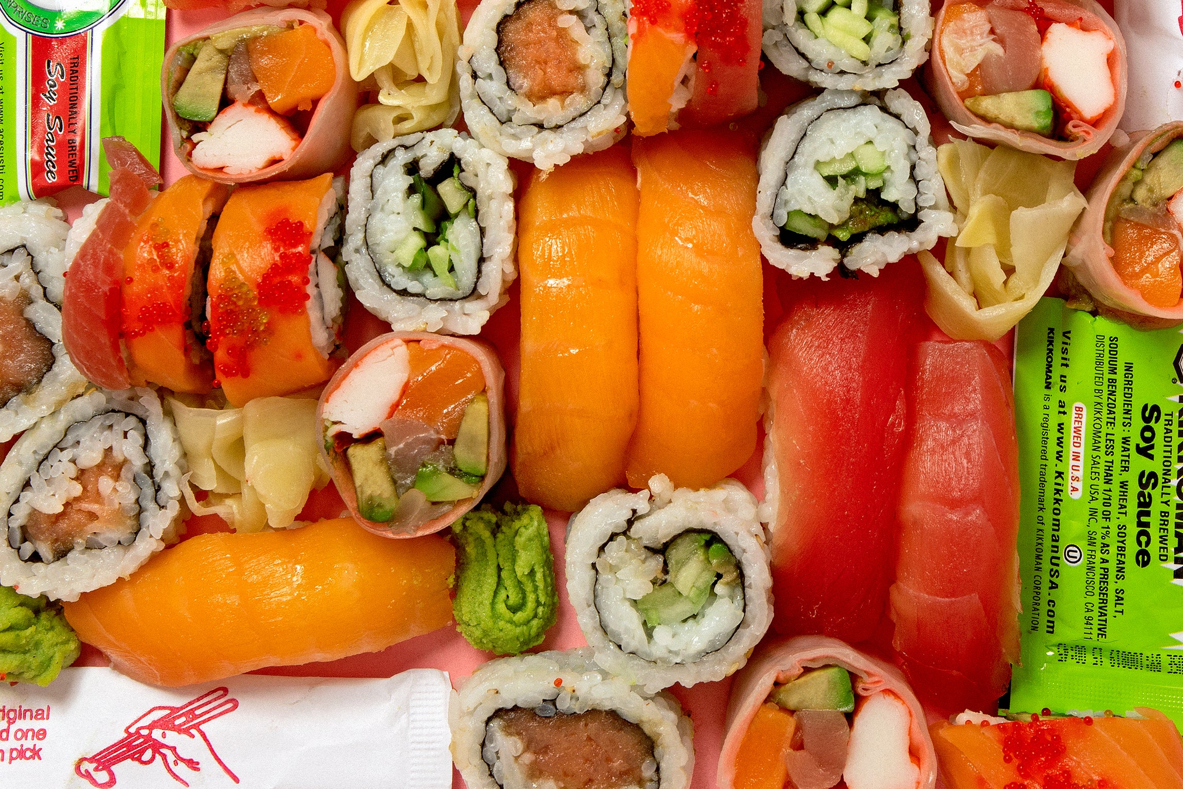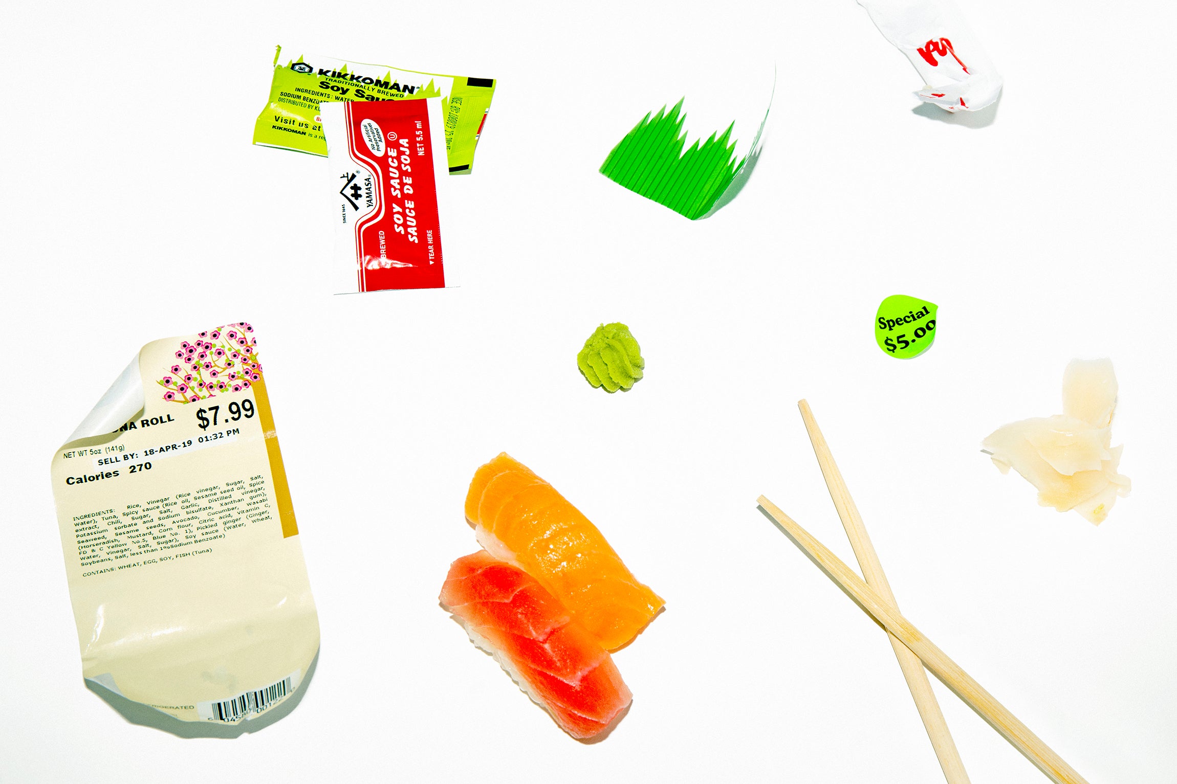 Despite various evidence to the contrary, such as all the climate news and…actually all news, it is a glorious time to be alive. The evidence for this is prepackaged sushi. It’s everywhere, all the time: in airports and train stations, at grocery stores, at sports stadiums, at Walgreens. I like consistency, so I find this reassuring: Yes, the quality varies, but the little plastic black-bottomed box, the line of fake grass, the petals of pickled ginger—they are almost always there.