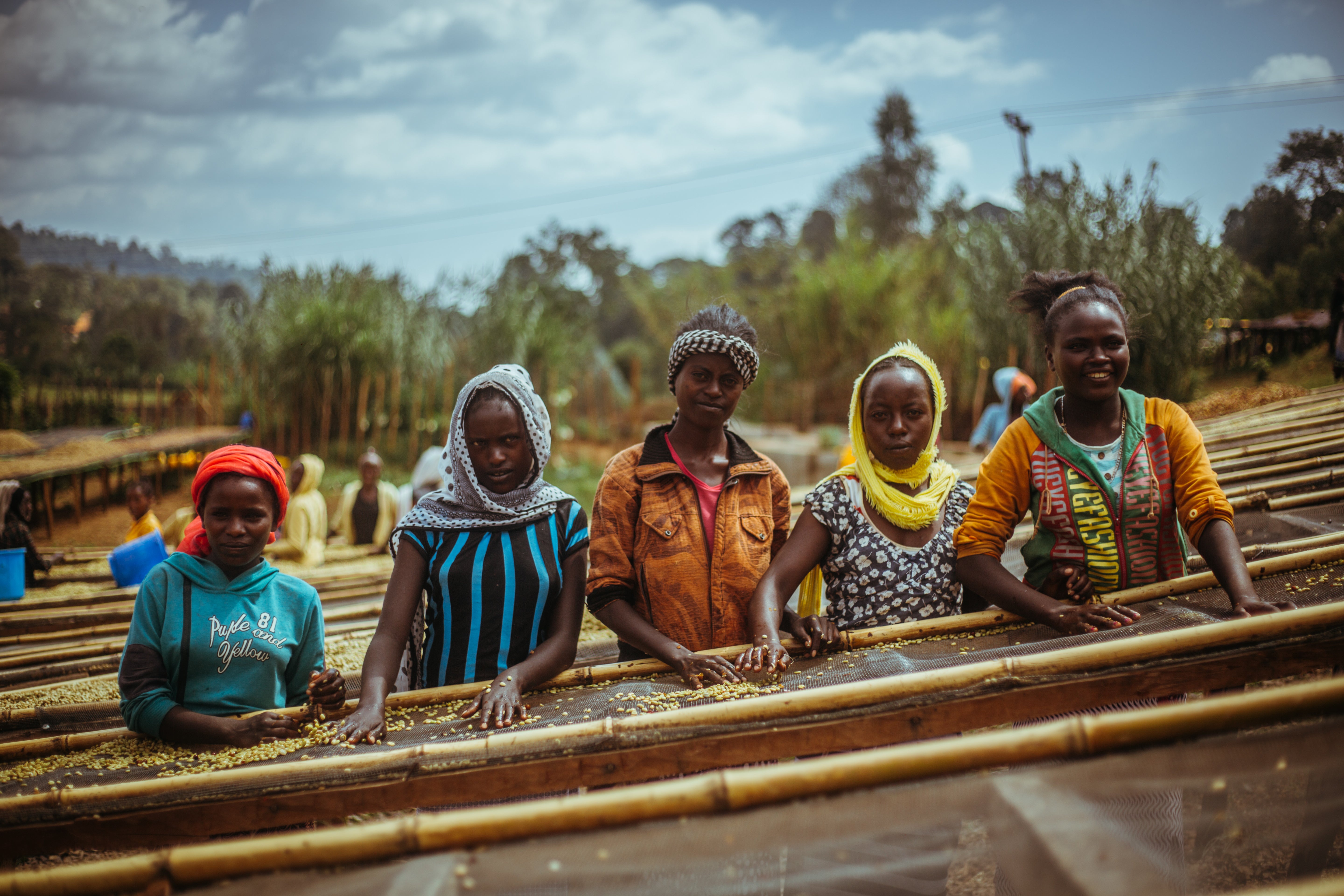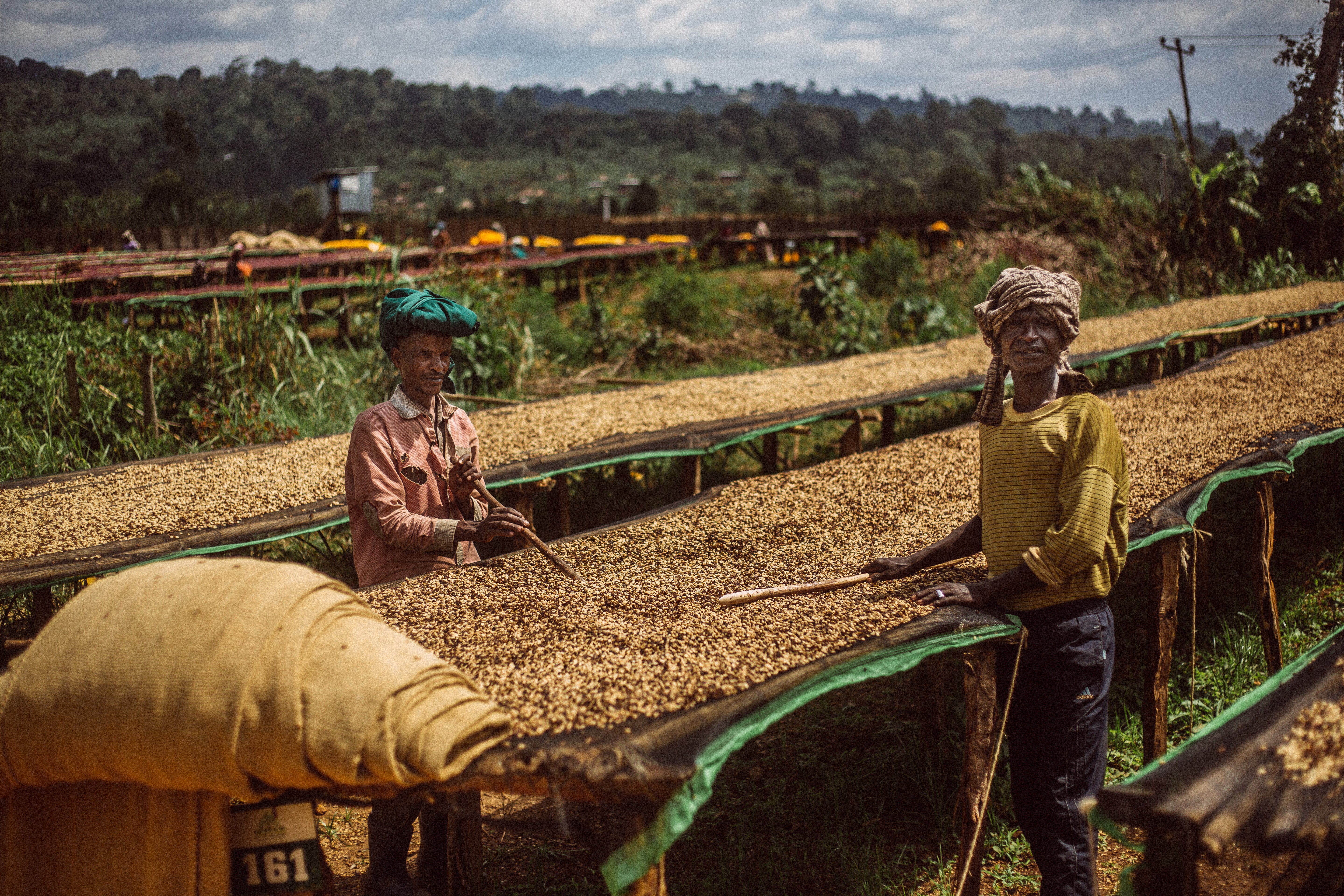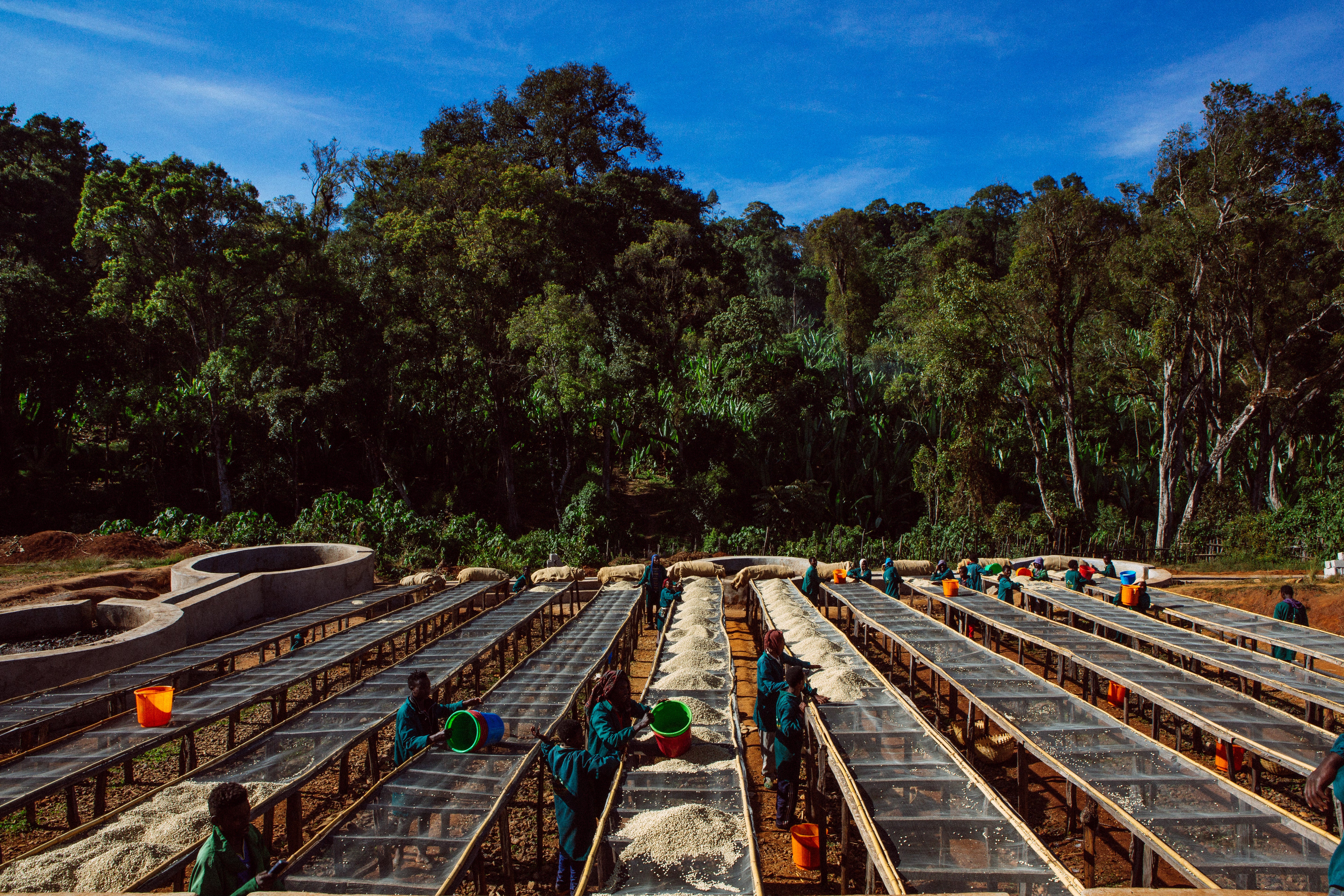 On the flip side is processed, or washed, coffee. Washing is how most coffee is produced around the world—in coffee-growing regions like Peru, Bolivia, and most of Central America —and gets coffee more to the middle-of-the-road form. Some of the steps in the process are similar to naturals, but with some extra steps. The cherry is purchased by Haile, sorted, and instead of being sent directly to the tables to dry, it’s forced through a machine that strips the coffee of its slimy pulp. The drupe (what we come to call beans) still have a coating of mucilage and are soaked in large tanks of water for one to two days of fermentation, then placed on large drying tables for additional drying (8 to 15 days).