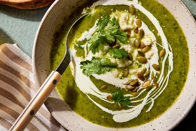 Extra Good A Creamy Poblano Soup to Take the Chill Away Potatoes meet poblanos with a shower of tasty toppings Story: Zola Gregory