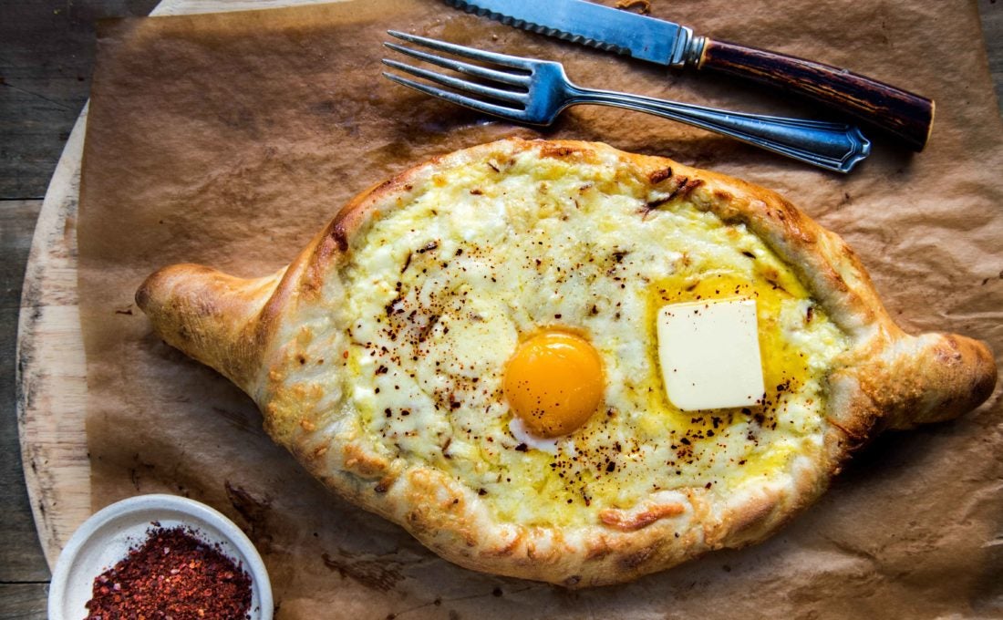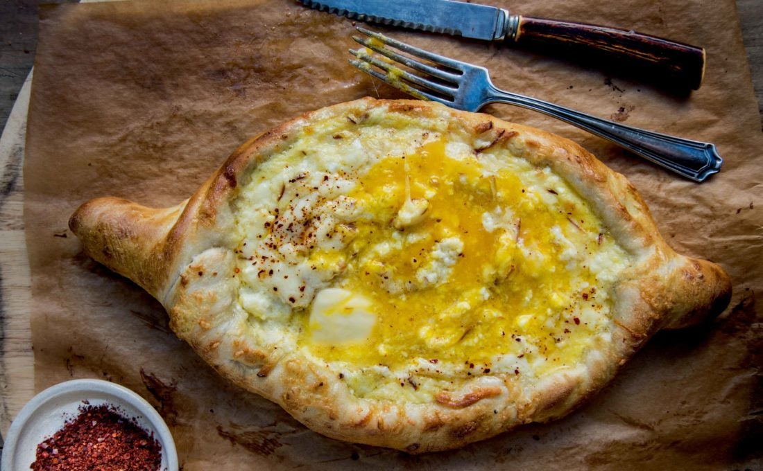 Cooking The Republic of Georgia Has a Family of Cheesy Breads If you can roll out pizza dough, you can make khachapuri—Georgia’s famous cheese- and egg-filled bread canoes. Story: Linda Schneider