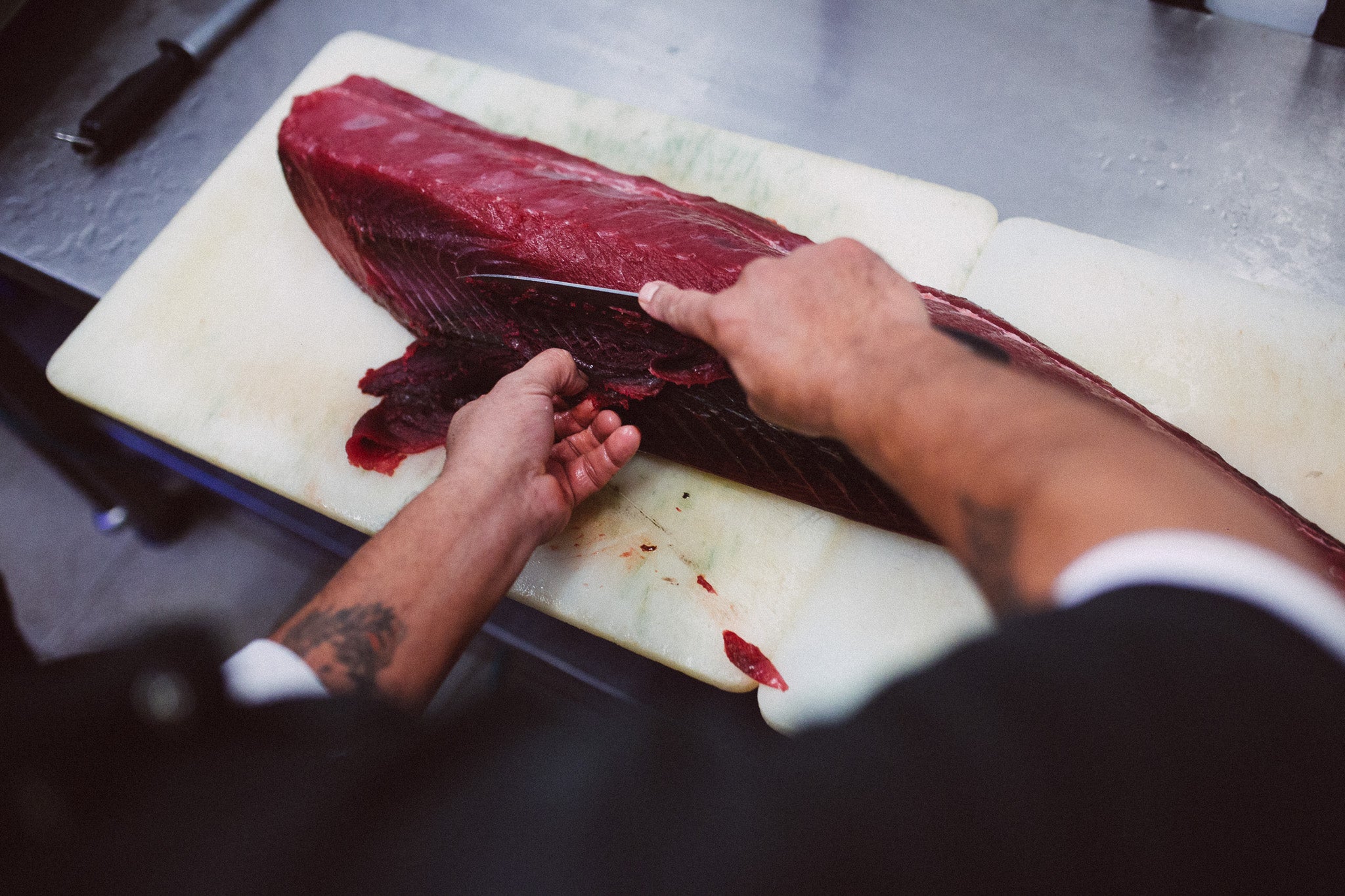 There were two key rules for restaurant, which he called Uri Buri (“buri” is the Hebrew word for gray mullet, a common fish found in Israel’s Mediterranean, and also it rhymes quite well with “Uri.”) One was to serve only food the chef would eat, which was predictably the seafood that surrounded him. The second was the idea of using less: composing the dishes with as little as possible, which in a culinary era still rooted in traditions of Escoffier was pretty radical. Minimalism is a focus the chef still applies today when cooking fish and seafood using a simple pantry: olive oil, garlic, chile pepper, coriander, and lemon.