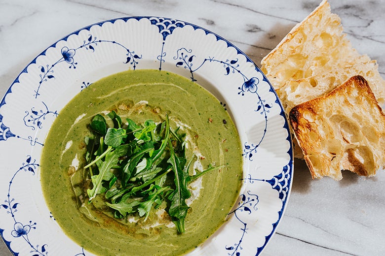 Potato and Greens Soup with Garlic Butter