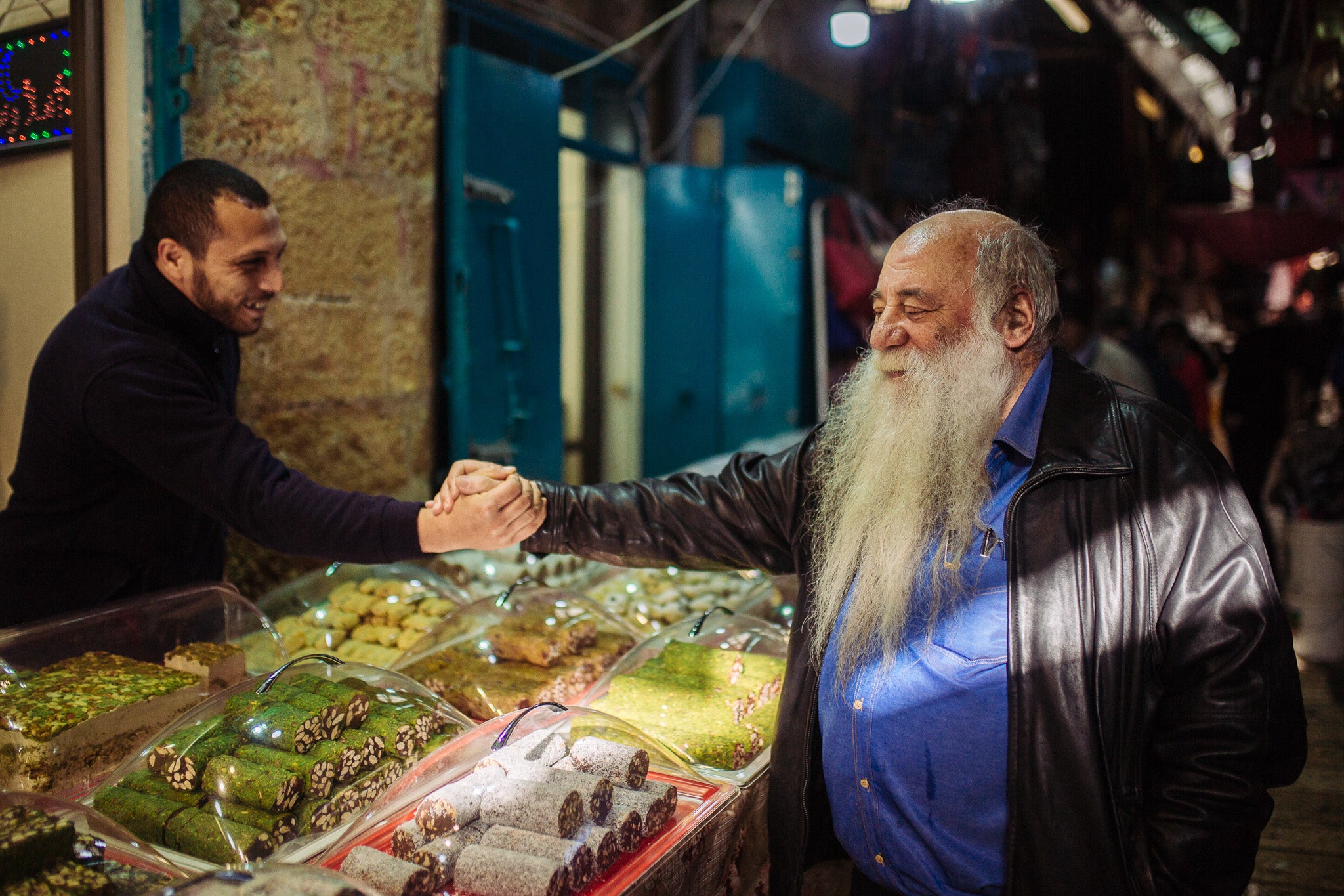“Habibi,” says Uri Jeremias over and over as he strolls through the old Arab market of Akko, copy of Israel Hayom under his arm, holding court with his fellow citizens. Habibi to the old man scaling the red mullet, habibi to another hawking a pile of tiger prawns still wiggling with life, drops of the Mediterranean Sea spraying wildly. Habibi to the guy with the Bavarian complexion and rosy cheeks selling za’atar, cumin, and fists of tamarind powder that perfumes the small shop. And habibi to another fisherman, now with an added handshake with familiarity and some pageantry—not quite Harden and Paul postvictory, but complicated to the point that these men are pretty good friends.